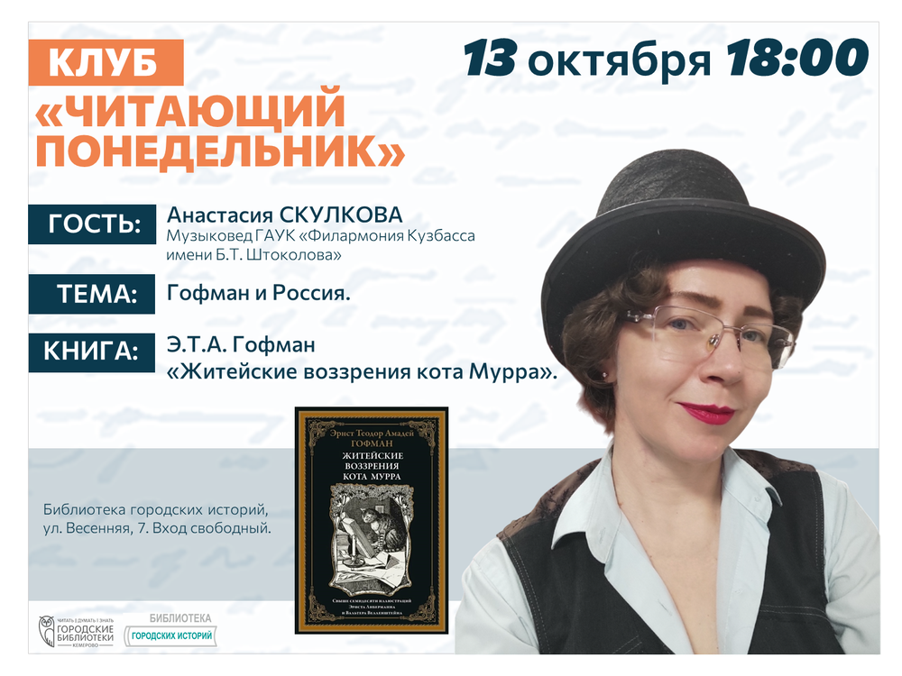 30.01Встреча клуба «Читающий понедельник» с актрисой Кемеровского областного театра драмы им. А.В. Луначарского Екатериной Грибановой.