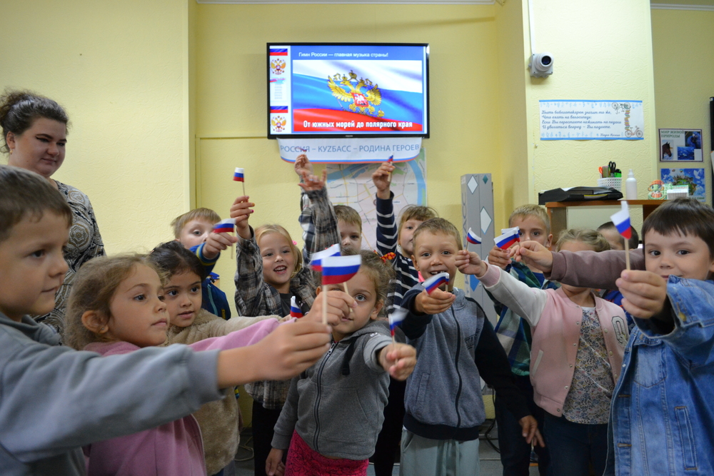 - торжественное исполнение Гимна Российской Федерации детьми с государственной символикой в руках